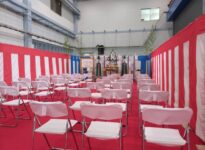 竣工式の会場は室内に限らず式典のレイアウトは様々です。