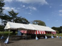 神事終了後、必要に応じて記念写真をとっていただいたり施主様・業者様にて多少のお打ち合わせを設営テント内にてしていただいて結構です。