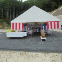 三重県名張市 企業様新築着工の地鎮祭 レンタル設営 3間x6間テントにて地鎮祭設営をさせていただきました 外部から内部の細部にいたるまできっちりとした起工式設営をさせていただいております 愛知県で地鎮祭・竣工式設営な …