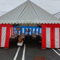 愛知県江南市 企業様新築着工の地鎮祭 レンタル設営 33間x5間テントにて地鎮祭設営をさせていただきました カーペット敷きで外部から内部の細部にいたるまできっちりとした起工式設営をさせていただいております 愛知県で地 …