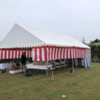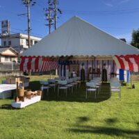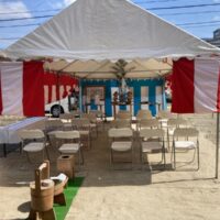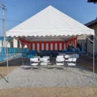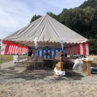 愛知県名古屋市 新築着工の地鎮祭 レンタル設営 新築着工の地鎮祭 2間x4間の小型のテントを使用しての地鎮祭 晴れて気温も暑い地鎮祭になりました 愛知県で地鎮祭・竣工式設営ならシンサイサービス 岐阜県・愛知県・名古屋市 …