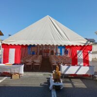 岐阜県美濃加茂市 企業様新築着工の地鎮祭 レンタル設営 3間x6間テントにて地鎮祭設営をさせていただきました 外部から内部の細部にいたるまできっちりとした起工式設営をさせていただいております 愛知県で地鎮祭・竣工式設 …