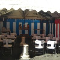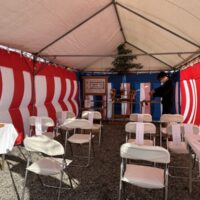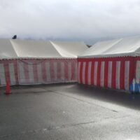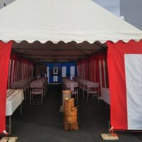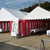 愛知県名古屋市 企業様新築着工の地鎮祭 レンタル設営 地鎮祭・起工式 22間x4間テントで12様ほどが参列の地鎮祭 小型の設営内容ですがこの日は風も強く雪も降るなど非常に過酷な状況の中、司会者さんもとても寒そうでした。 …