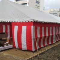 愛知県名古屋市 企業様新築着工の地鎮祭 レンタル設営 地鎮祭・起工式 3間x4間テントで18様ほどが参列の地鎮祭 名古屋市中区で早朝のため静かに設営を心がけなければいけませんでした(;^ω^) 愛知県で地鎮祭・竣工式設 …