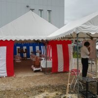 愛知県名古屋市 新築着工の地鎮祭 レンタル設営 新築着工の地鎮祭 2.5間x5間テントを使用し、1.5x2テントを控えに使用した地鎮祭 スポットクーラーも準備で万全の会場設営をさせていただいております 愛知県で地鎮祭・ …