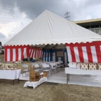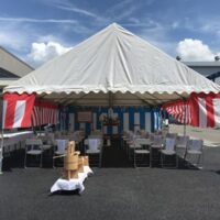 愛知県名古屋市 工場新設の竣工式レンタル設営 某企業様 新事務所倉庫完成の竣工式 暑い日ではありましたが事務所前の駐車場にて3間x5間テントを使用しての竣工式 スポットクーラーを2台おいても暑い暑い( ;∀;) 愛知県 …