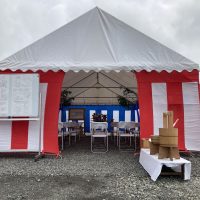 石川県金沢市 新築着工の地鎮祭 レンタル設営 某大手スーパー様 新築着工の地鎮祭 今回は金沢市へ出張地鎮祭 3間x4間テントを3張り使用し、4間x9間のスペースを準備 テント下にはカーペットを敷設し足元もストレスのない …