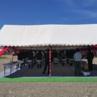 愛知県名古屋市 新築着工の地鎮祭 レンタル設営 某大手スーパー様 新築着工の地鎮祭 雨が降らないか心配な中、3間x4間テントと2間x4間テントを使用しての地鎮祭を準備させていただきました。 席の間隔も程よく空いて主暑い …
