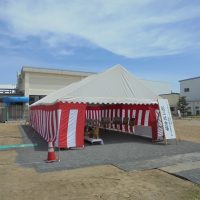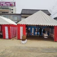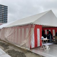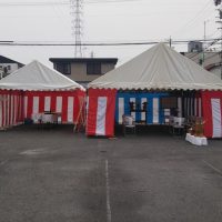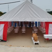 愛知県名古屋市 新築着工の地鎮祭 レンタル設営 某企業様 新築着工の地鎮祭 3間x5間テントを使用して30名様ほどが参加の地鎮祭 準備用の控えテントも設置し、お客様へ最高のおもてなしを心がけておられます 短幕を使用する …