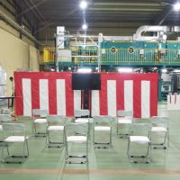 愛知県名古屋市 工場完成の竣工式のレンタル設営 竣工式と起動式・落成式を兼ねての式典 神事行ってからの落成式で役員様のご挨拶、そして新しく設置の機械に火入れをしていただく起動式を行っていただきました 愛知県で地鎮祭・竣 …