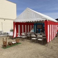 愛知県名古屋市 企業様新築着工の地鎮祭 レンタル設営 2間x4間テントを使用しての地鎮祭 程よい広さのテントを使用しての地鎮祭 席を広く取ってのコロナ対策ですね(^^♪ 愛知県で地鎮祭・竣工式設営ならシンサイサービス …