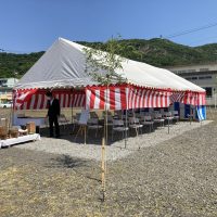 愛知県名古屋市 新築着工の地鎮祭 レンタル設営 某企業様 新築着工の地鎮祭 3間x6間テント使用し、20名様ほどが参加の地鎮祭 暑い日ではありましたが短幕を使用することで風通しも良く気持ちのいい起工式になりました 愛知 …