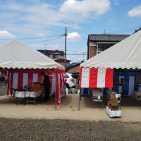 愛知県名古屋市 法人様新築着工の地鎮祭・起工式の設営 レンタル 天気のいい秋晴れの中3間x4間テントに2間x4間テントを控えにほどよいサイズの地鎮祭設営をさせていただきました テント下は砂敷でしっかり整地されお客様への …