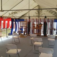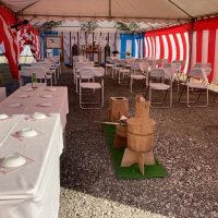 愛知県名古屋市 某企業様新築着工の地鎮祭・起工式の設営 レンタル 今回はシンプルに3間x6間テントに椅子・机・竹のみの簡易設営 早朝にこれらのセットだけ設営させていただき神事終了後に撤去させていただきました 愛知県で地 …