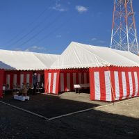 愛知県名古屋市 マンション新築着工の地鎮祭・起工式の設営 レンタル 特殊仕様のパネル上にカーペットを敷き3間x6間テントに2間x3間テントを控えにVIP仕様の地鎮祭設営をさせていただきました 気温も良し、足もとも良し、 …