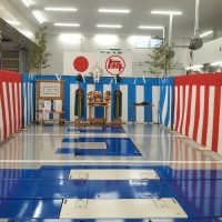 愛知県名古屋市 カーディーラーの竣工式のレンタル設営 新しく建て替えられた大手ディーラーさんの整備工場 整備工場事務所ということでさっぱりした作りになっておりましたが建物の完成を神様へ報告する神事はしっかりと執り行われ …