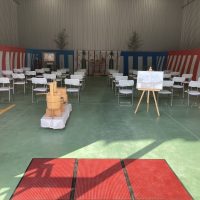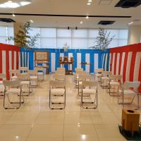 愛知県名古屋市 竣工式のレンタル設営 某企業様 新築完成竣工式の式典 広々とした倉庫を利用しての竣工式 人数もそこそこだったので設営内容もこじんまりとした内容にて準備 愛知県で地鎮祭・竣工式設営ならシンサイサービス 岐 …