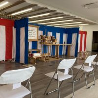 愛知県名古屋市 竣工式のレンタル設営 某葬儀会社様 新築完成竣工式・テープカットの式典 葬儀ホールを利用しての竣工式 椅子などの利用可能なものは施設のものを利用し、コスト抑えた設営内容になっております 愛知県で地鎮祭・ …