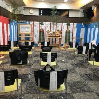 滋賀県彦根市 竣工式の設営 レンタル デイサービスセンター完成の竣工式 限られたスペースでできるだけ広く会場設営し、席の間隔をあけての竣工式 3間x4間ほどのスペースが確保できソーシャルディスタンスを意識しての竣工式が執 …