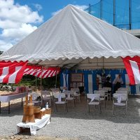 愛知県名古屋市 地鎮祭・起工式の設営 レンタル 3間x5間テントを多用しての起工式設営 公共工事になるためそれなりに大きな準備をさせていただきました 司会者他マイクセットの準備もさせていただき滞りなく式典の準備をさせて …