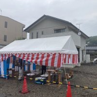 愛知県名古屋市 地鎮祭・起工式の設営 レンタル 企業様新事務所着工の地鎮祭 人数は少なめですが3間x5間テントを使用し、紅白幕もたくし上げ暑さ対策とコロナ対策を意識した設営内容になっております 愛知県で地鎮祭設営ならシ …