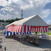 愛知県名古屋市 地鎮祭・起工式の設営 レンタル 店舗様の地鎮祭 少人数のためテントも小さめの2間x4間テントを使用 暑さが厳しいため扇風機とスポットクーラーも準備し万全の準備をさせていただきました(^^♪ 愛知県で地鎮 …